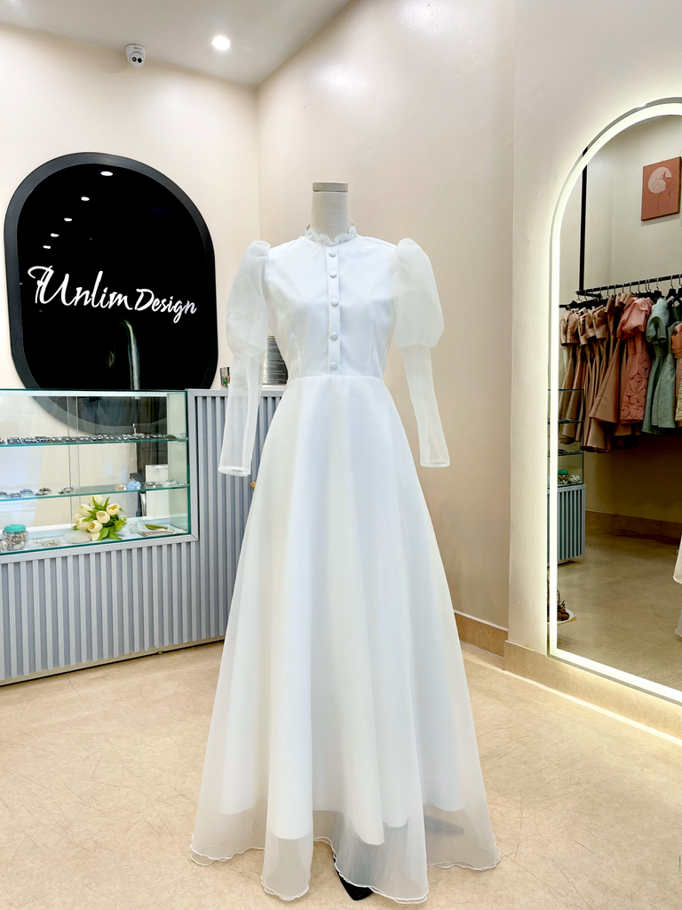 Thông tin sản phẩm: Tên: Maxi cổ tàu tay bồng Kiểu dáng: Maxi dàiChất liệu: Xốp, Satin bóngMàu sắc: TrắngSize: S - M - LMô tả chi tiết:Chất liệu Xốp kết hợp với vải Satin bóng càng làm tăng độ bồng xòe của chiếc Maxi này Với thiết kế tay áo dài và phần vai áo bồng, Maxi cổ tàu tay bồng không chỉ mang đến vẻ đẹp kín đáo và quý phái mà còn giúp nàng dâu che đi những khuyết điểm nhỏ trên cánh tay.Chi tiết ren cách điệu trên cổ cùng hàng cúc ở phần thân váy toát lên phong thái cổ điển nhưng lại vô cùng nữ tính, sang trọngNếu nàng đang tìm kiếm một chiếc váy với thiết kế kín đáo mà vẫn toát lên quý phái và sang trọng thì Maxi cổ tàu tay bồng sẽ là một lựa chọn hoàn hảo